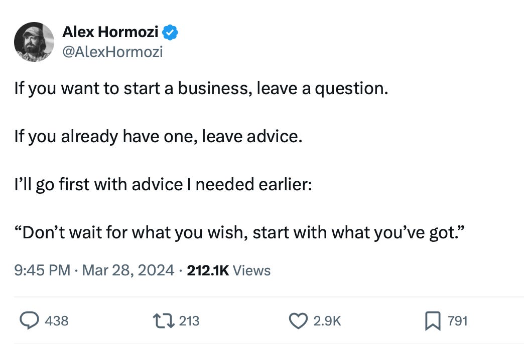 Whilst Alex’s tweet is about business, this rule can be applied to just about anything.